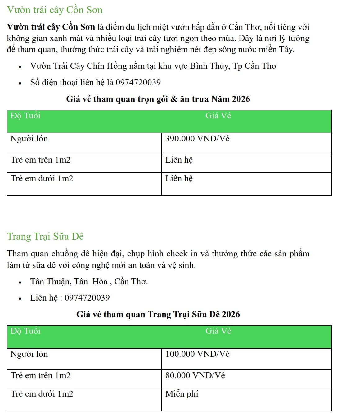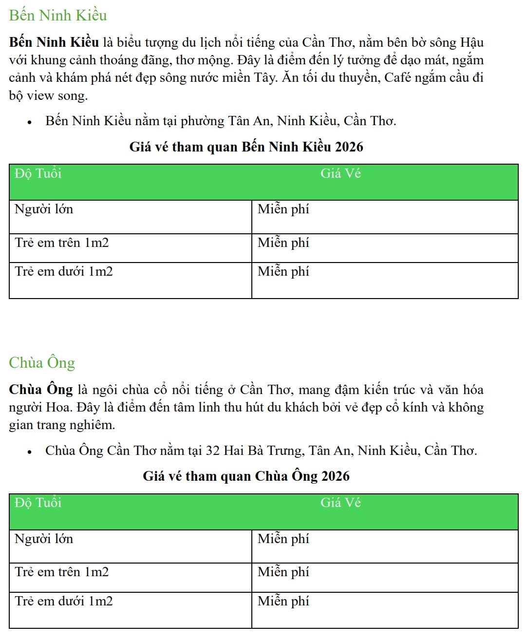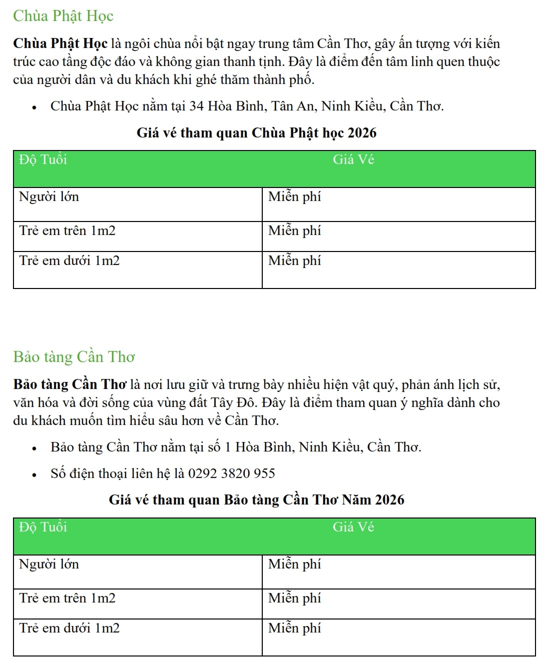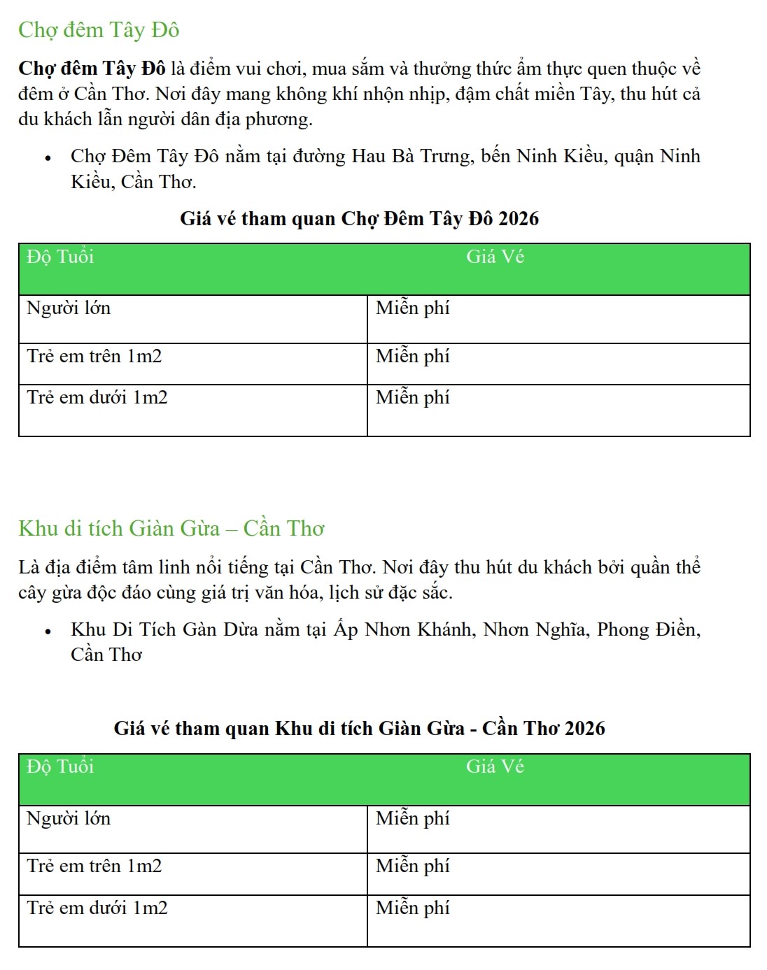 Update Bảng Giá Vé Tham Quan Tại Cần Thơ Năm 2026